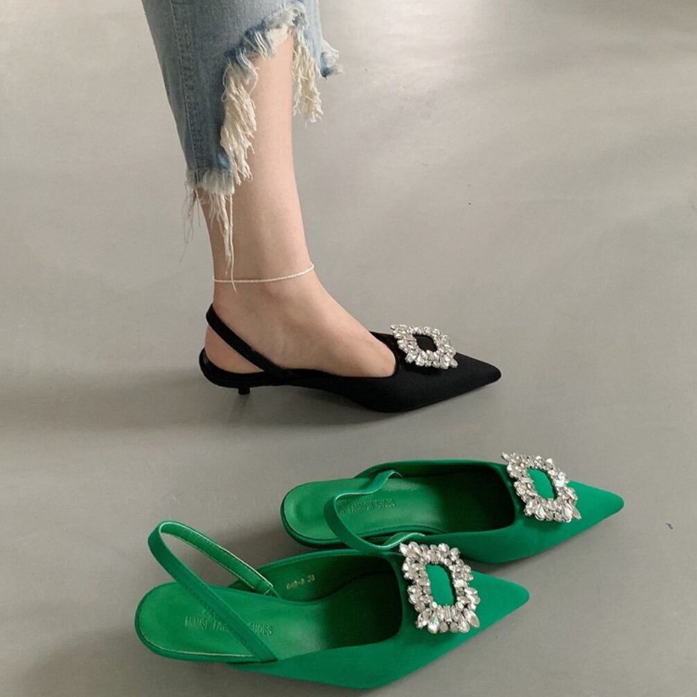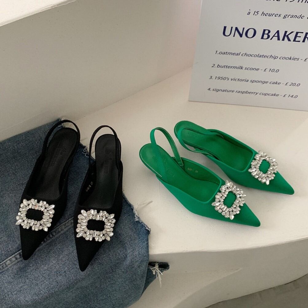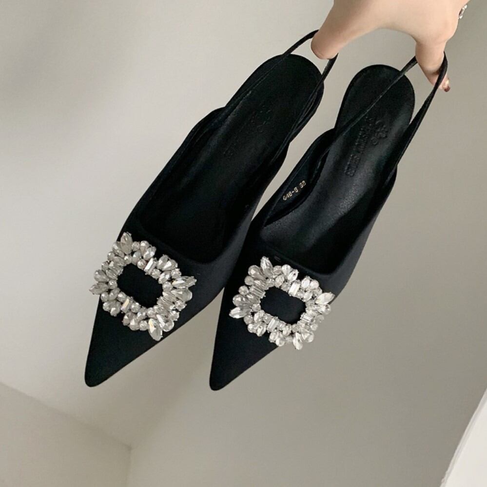 ビジュー付きオープンバックパンプス SU505