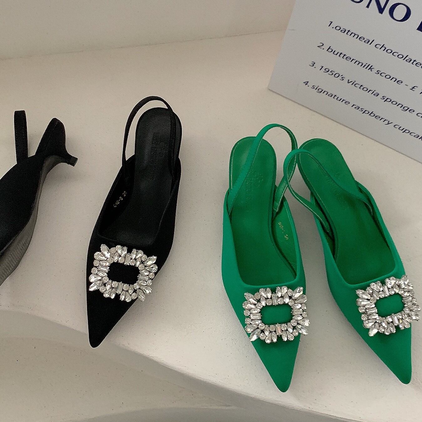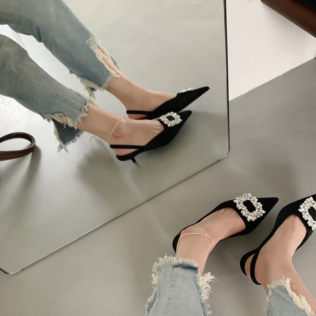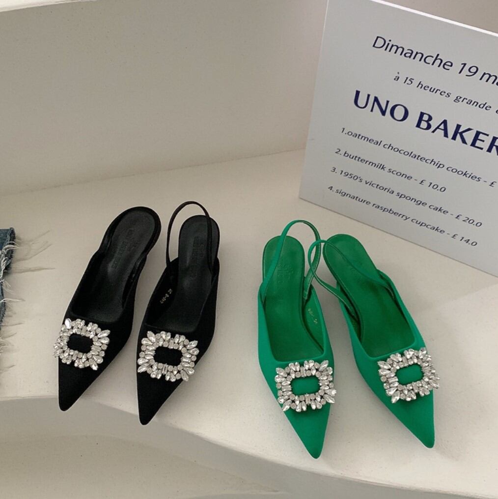 ビジュー付きオープンバックパンプス SU505