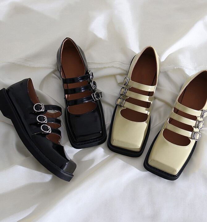《お届けについて》 当shopの商品は海外より取り寄せ・発送となる為 ご入金から1〜4週間前後で海外より発送いたします。 ・・・・・・・・・・・・・・・・・・・・・・・・ トレンド感満載のスクエアトゥローファー。 3つのベルトが個性を引き出してくれます! ◼️サイズ(cm) 34インチ(22cm) 35インチ(22.5cm) 36インチ(23cm) 37インチ(23.5cm) 38インチ(24cm) 39インチ(24.5cm) ヒール 3.5cm ◼️カラー ブラック ベージュ ◼️誠に恐れ入りますが、ご購入前に以下をご確認頂き ご承諾の上お買い求めくださいませ。 →https://www.sugarmiel.com/about ◼️管理番号:SU509 ◼️注意事項 ・こちらは簡易包装での発送となりますので、靴箱は付属しておりません。予めご了承くださいませ。 ・タイミングによっては 商品在庫切れにより注文キャンセルとさせていただく恐れもございますので、予めご了承くださいませ。 ・日本製とは検品基準が異なる為、縫製などが若干甘い場合があります。 ・仕入れ工場を変えることがあるため、記載サイズと若干異なる場合がございます。 ・商品の色味は、撮影方法・光の加減・お手持ちのパソコン・スマートフォンの画面設定によって実物と若干異なる場合がございます。 ・イメージ違いやサイズ交換等、お客さまご都合による交換、返品は対応出来かねます。 ◼️新商品入荷中!/新着情報をcheck https://www.sugarmiel.com/