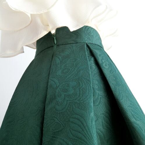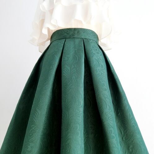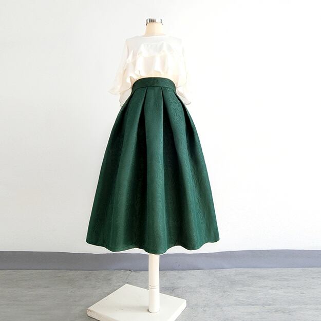 シックでレトロな雰囲気のグリーンカラーのフレアスカート。