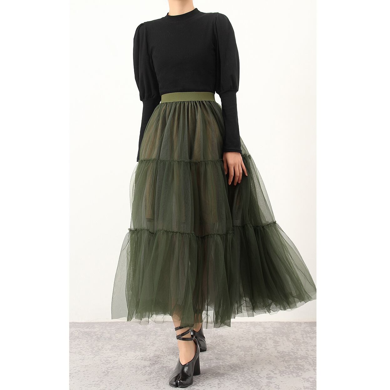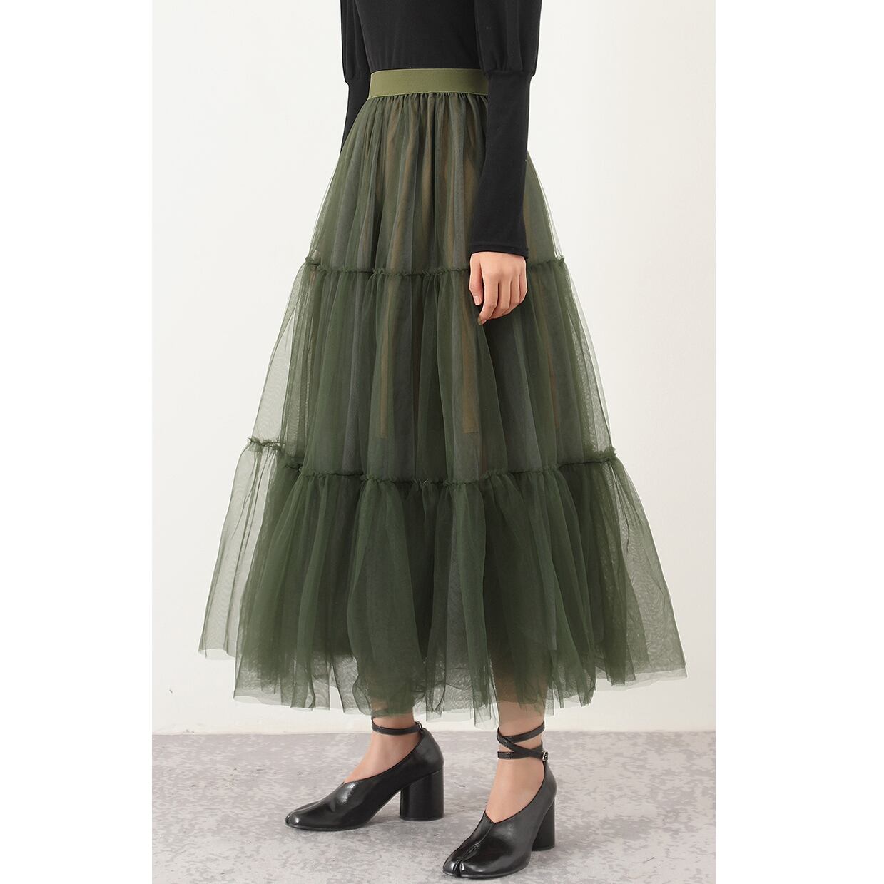 グリーンティアードメッシュスカート SU635