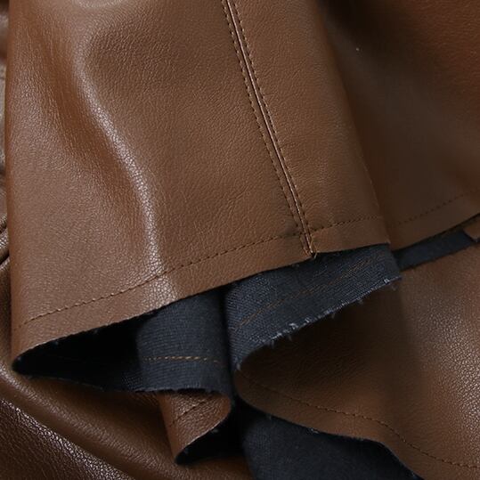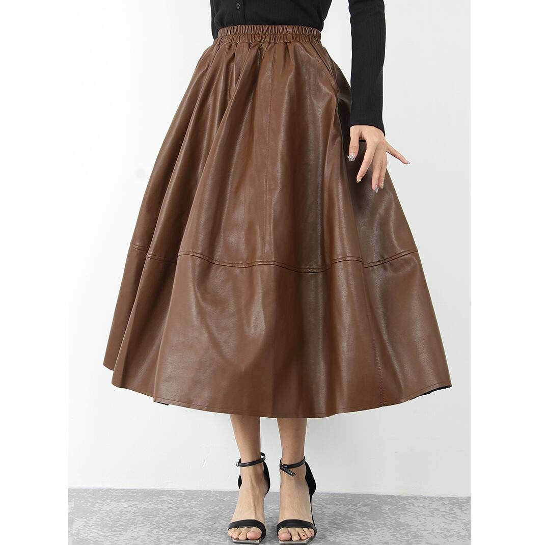 オシャレ見せ効果抜群なPUレザーのギャザースカート。