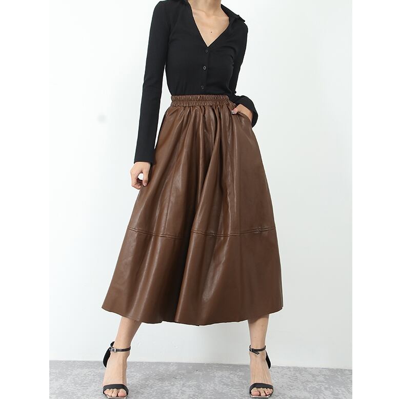ハードル高めの革アイテムでもガーリーなスカートなら取り入れやすい☆