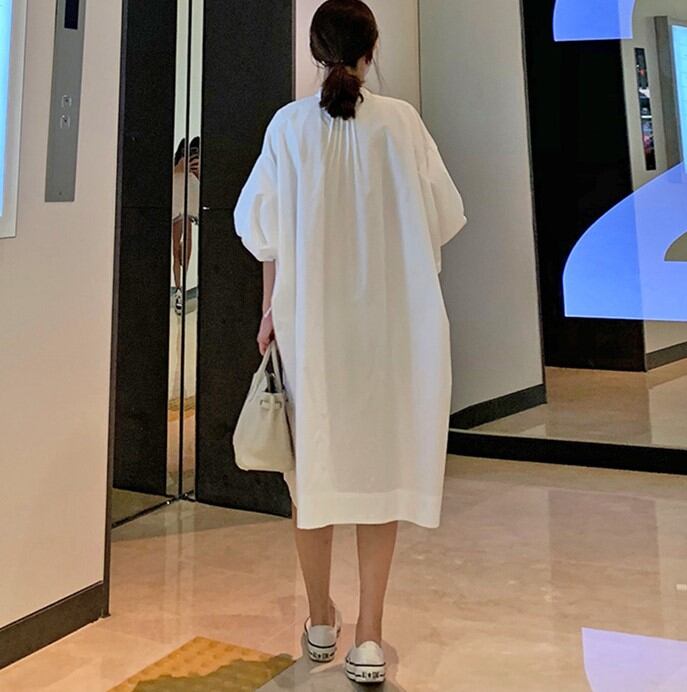 バブルスリーブスタンドカラーワンピース SU703