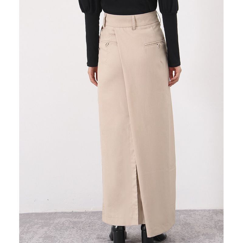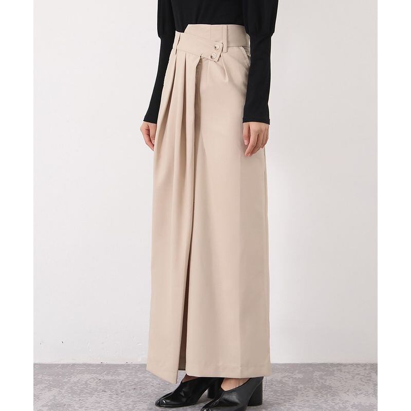 ラップスカート風なデザインのロングスカート。