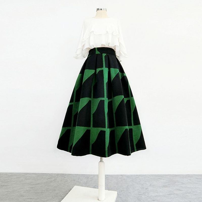 幾何学デザインフレアスカート SU890