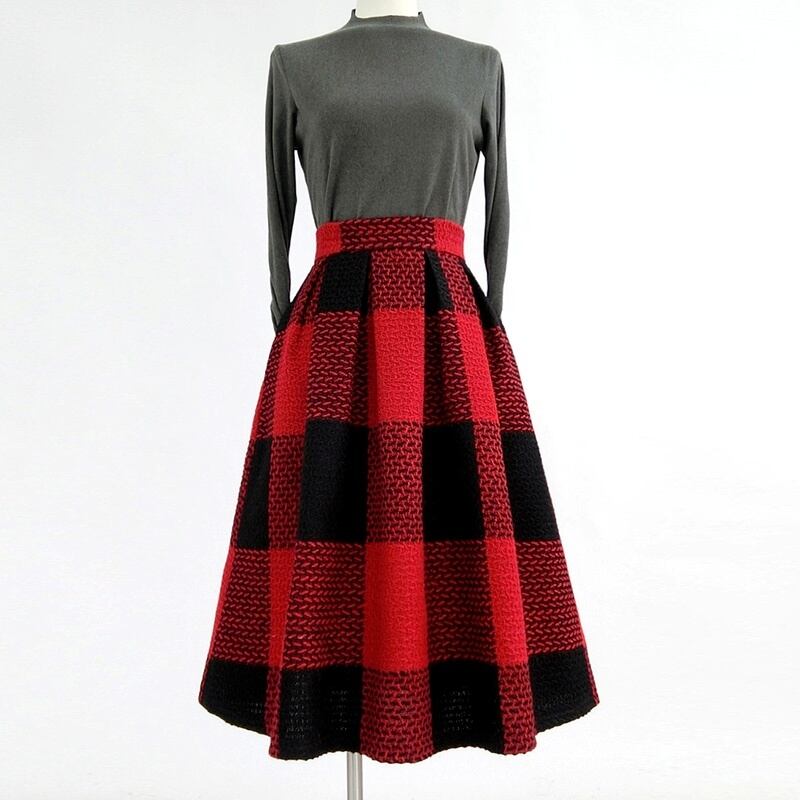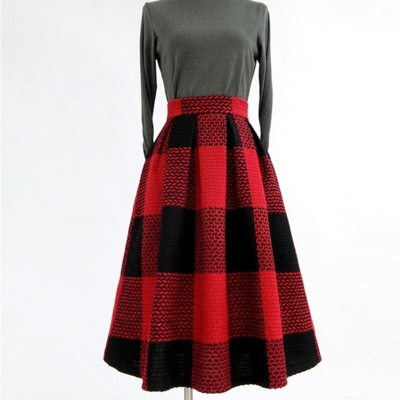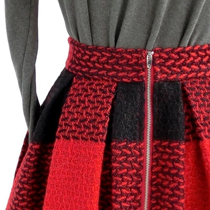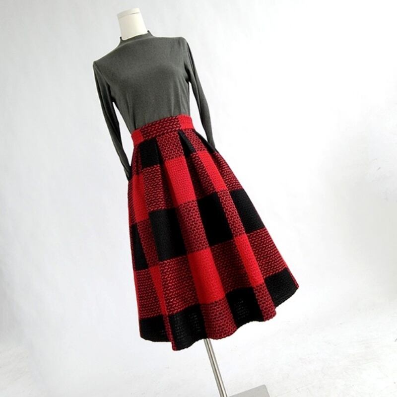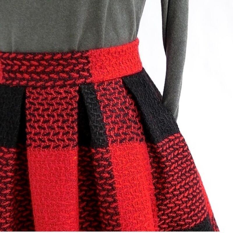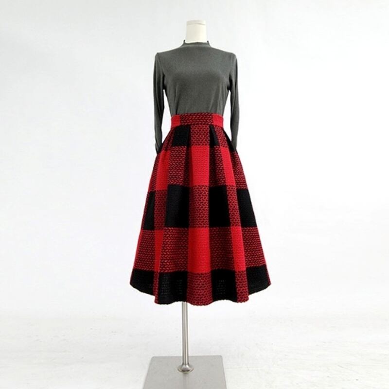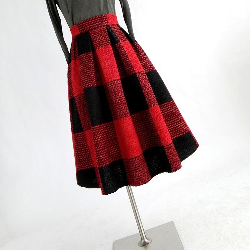はっきりしたコントラストカラーがカジュアルな雰囲気のブロックチェック柄のAラインスカート。