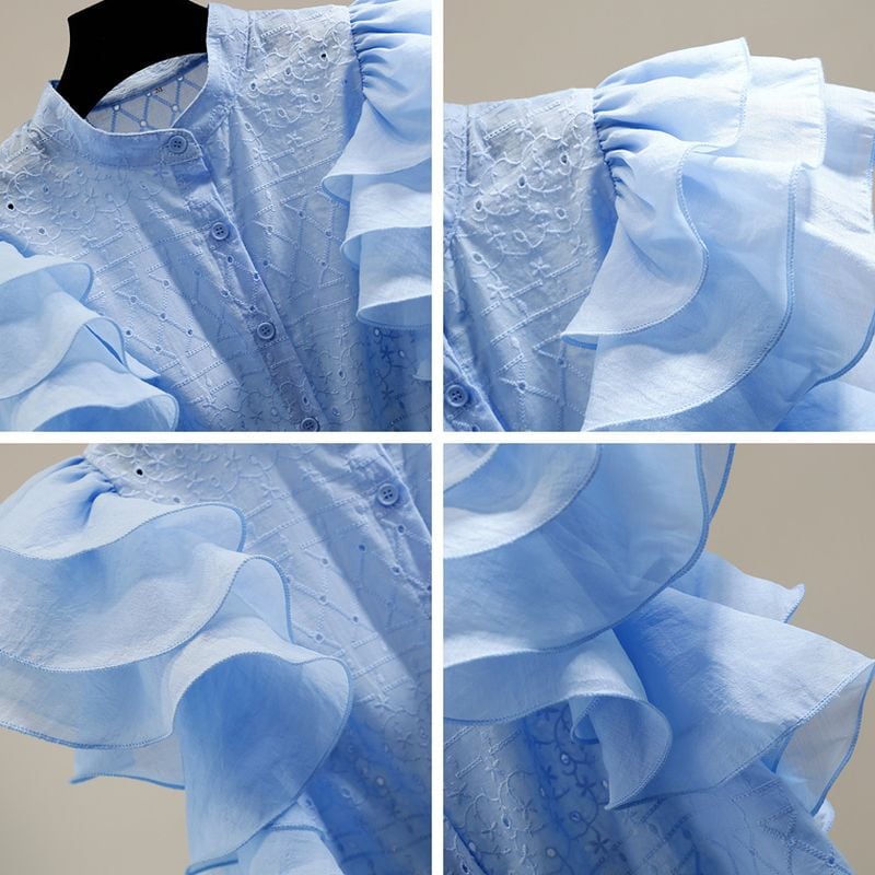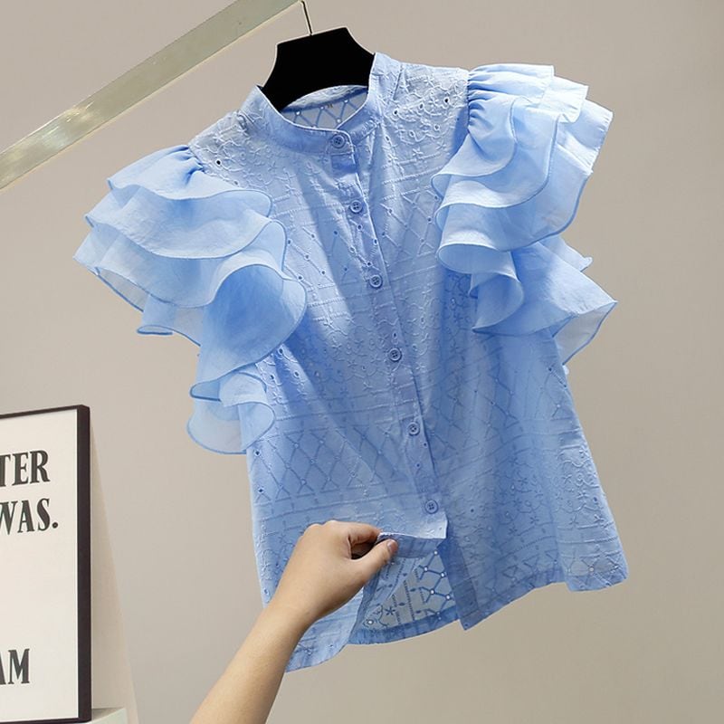 《お届けについて》 当shopの商品は海外より取り寄せ・発送となる為 ご入金から2〜4週間前後でお届け致します。 ・・・・・・・・・・・・・・・・・・・・・・・・ レースの刺繍がアクセントになったシフォンフリルシャツ。 袖口にはフリルがついたフライングスリーブが女性らしさを演出してくれます。 デイリーのカジュアルな着こなしも、オフィスやちょっとしたお出かけにも最適です♪ ◼️サイズ(cm) S:着丈55/胸囲88/肩幅36 M:着丈56/胸囲92/肩幅37 L:着丈57/胸囲96/肩幅38 ◼️カラー ブルー ホワイト ブラック ピンク ◼️素材 レース ■ご購入前にSHOPの注意事項をご確認頂き、 ご納得いただいた上でのご購入をお願いいたします。 https://www.sugarmiel.com/about ◼️管理番号:SU1289 ◼️注意事項 ・タイミングによっては 商品在庫切れにより注文キャンセルとさせていただく恐れもございますので、予めご了承くださいませ。 ・日本製とは検品基準が異なる為、縫製などが若干甘い場合があります。 ・仕入れ工場を変えることがあるため、記載サイズと若干異なる場合がございます。 ・商品の色味は、撮影方法・光の加減・お手持ちのパソコン・スマートフォンの画面設定によって実物と若干異なる場合がございます。 ・イメージ違いやサイズ交換等、お客さまご都合による交換、返品は対応出来かねます。 ◼️新商品入荷中!/新着情報をcheck https://www.sugarmiel.com/ ◼️人気アイテムはこちらをcheck https://www.sugarmiel.com/categories/3942036