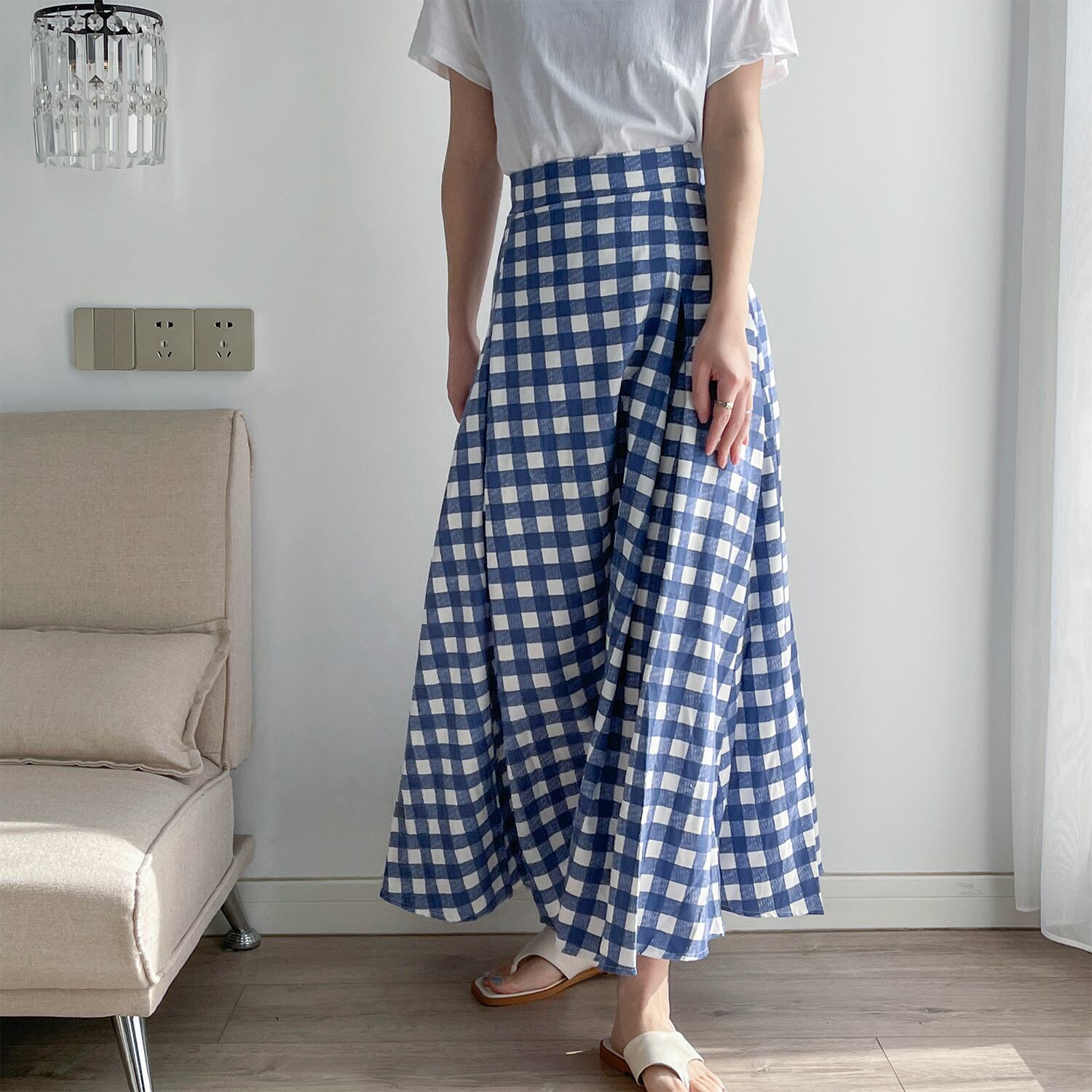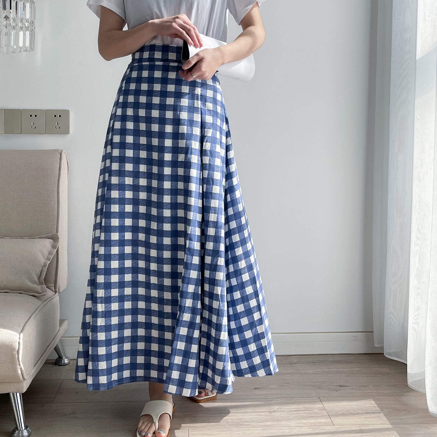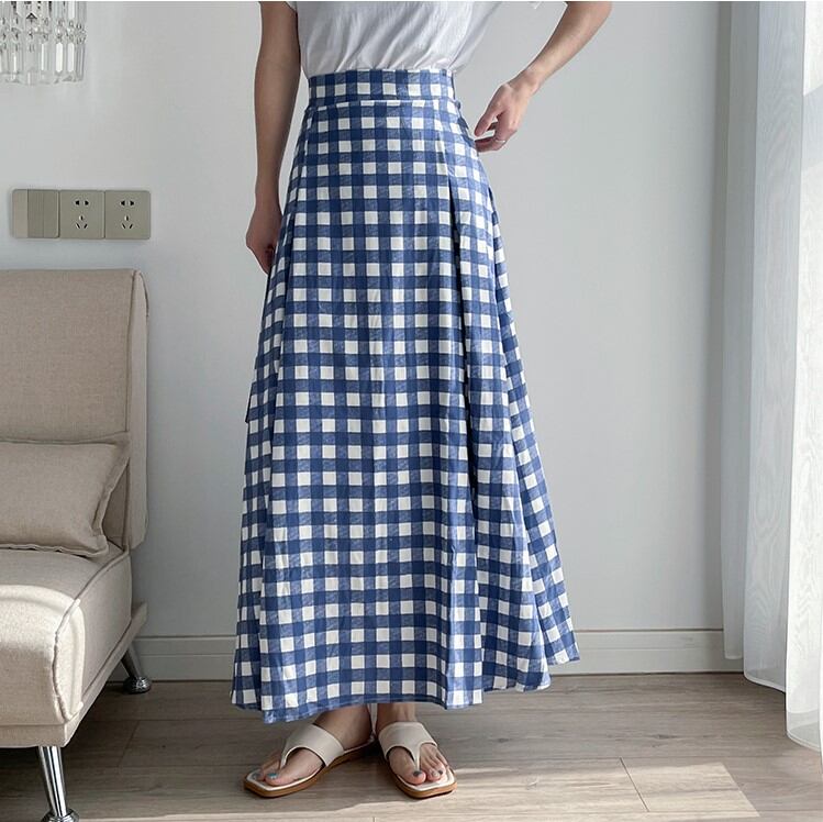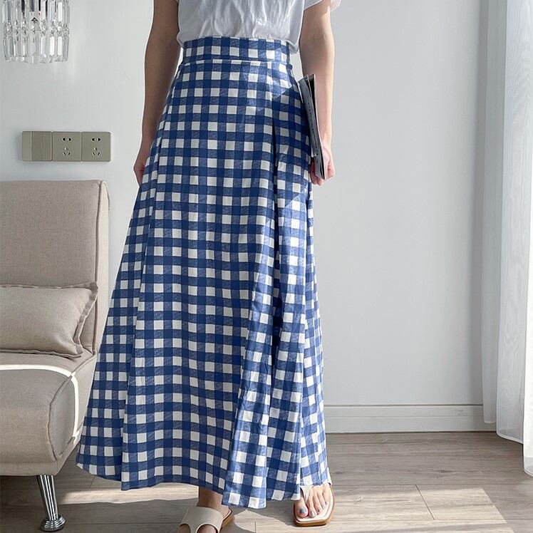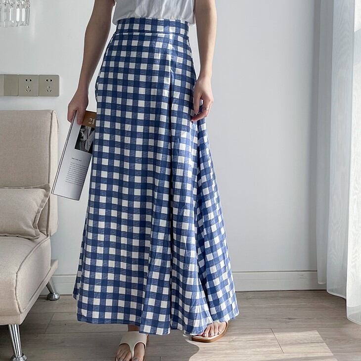 ハイウエスト Aライン チェック柄ロングスカート SU1288
