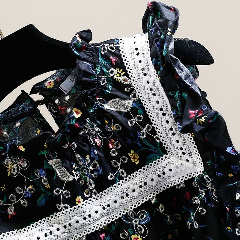 花柄の刺繍が華やかさとエレガントさが融合し、女性らしさを引き立てます。