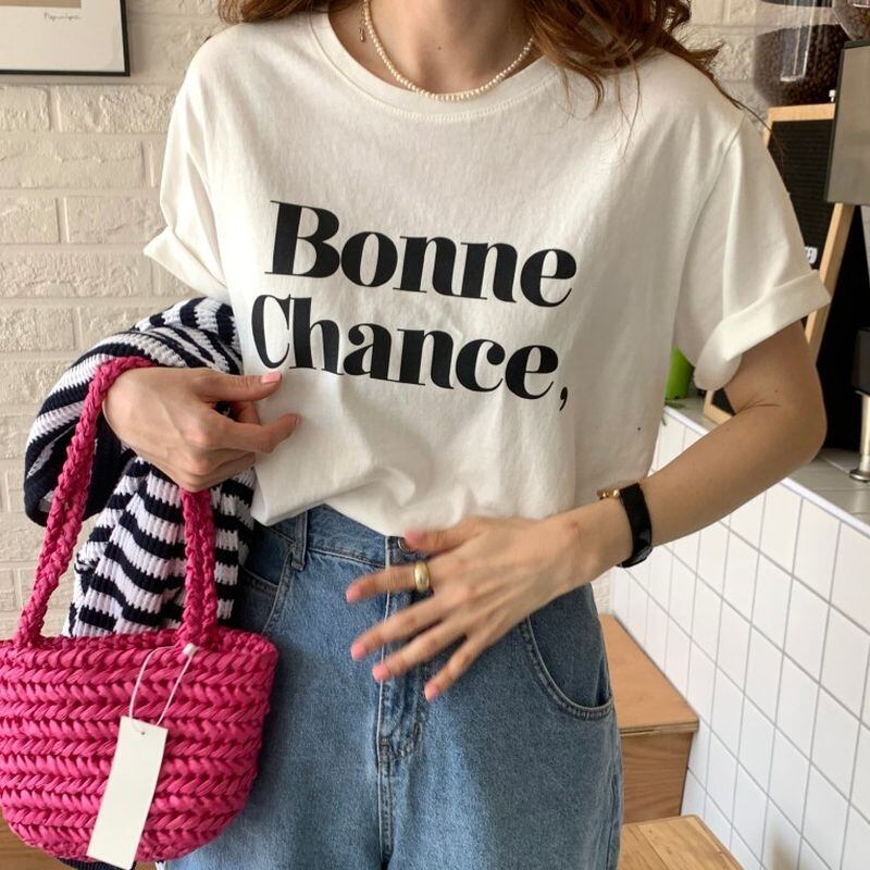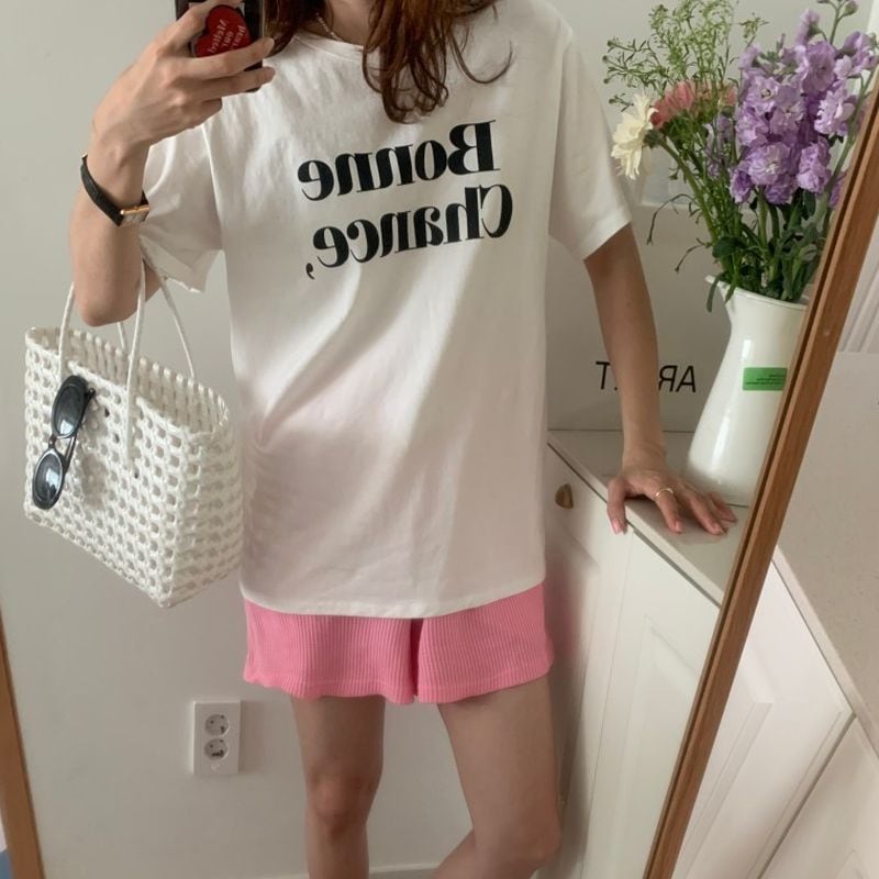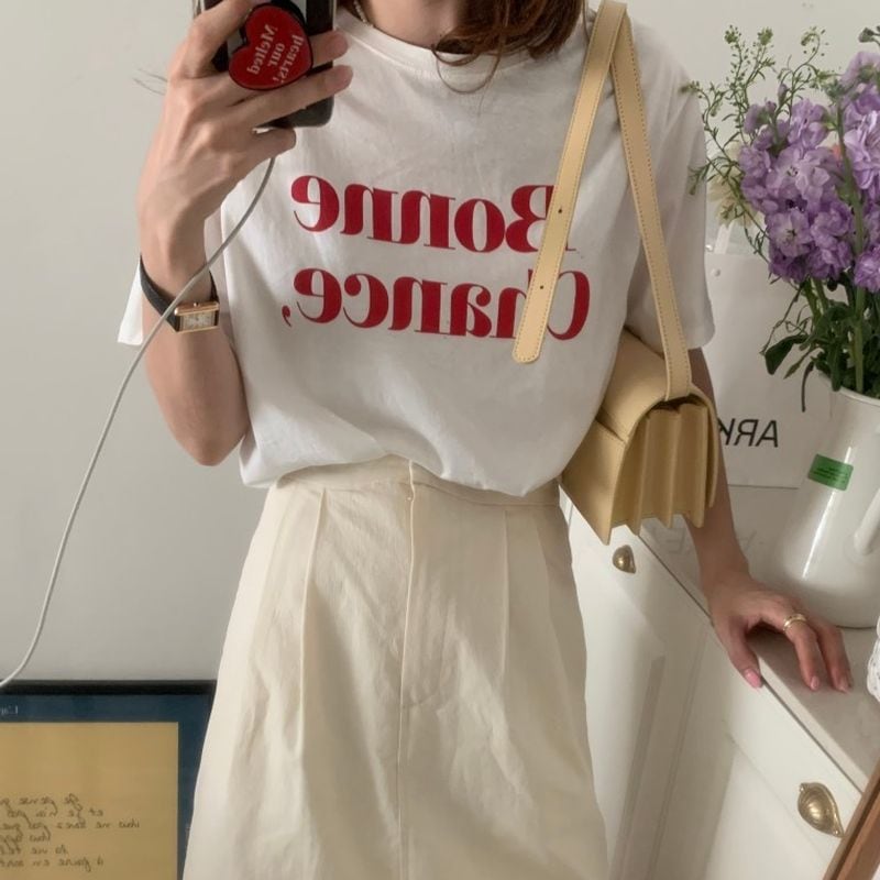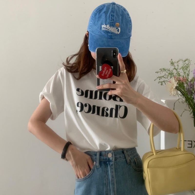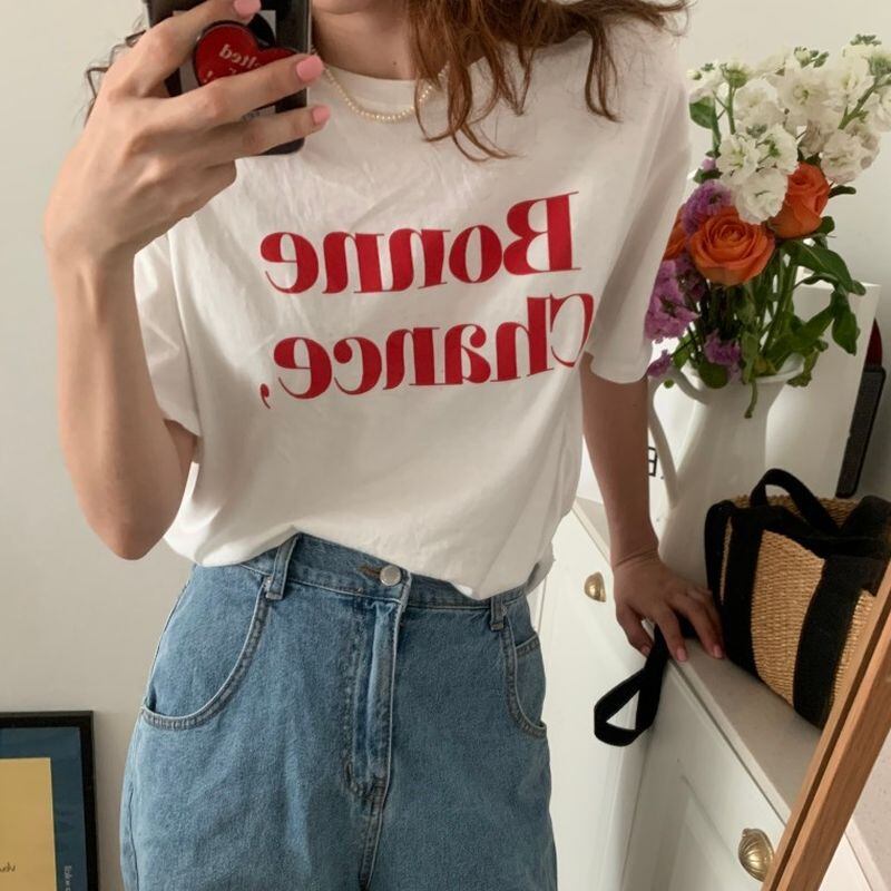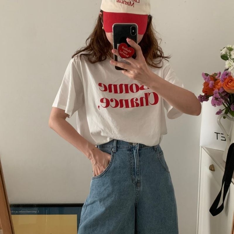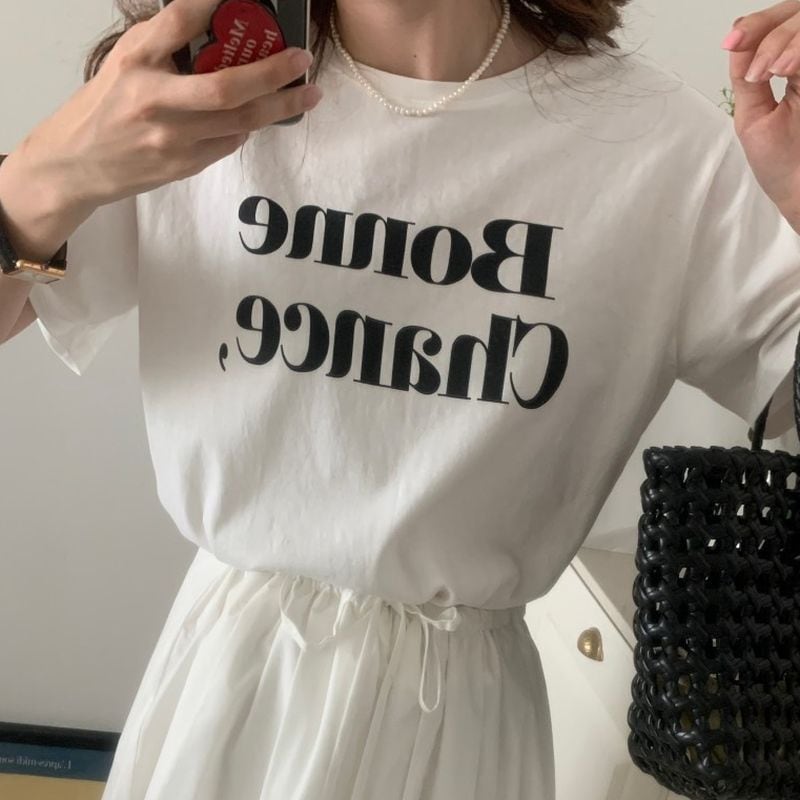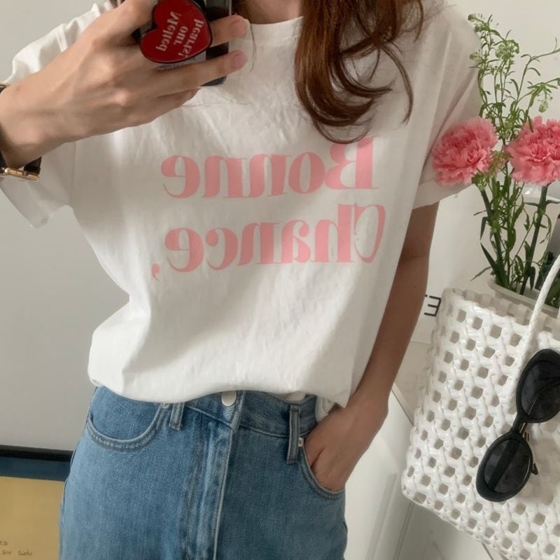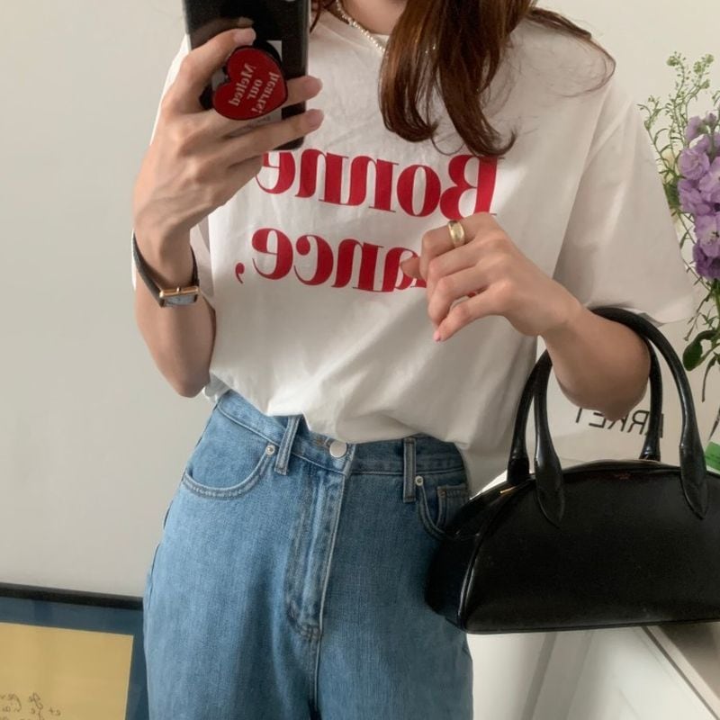 シンプルでありながら、個性的なデザインが魅力のロゴプリントTシャツ。